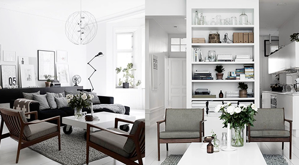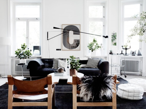 黑色,白色,灰色和天然木材給這個客廳提供了一個可以直接從另一個時代的複雜的空氣。