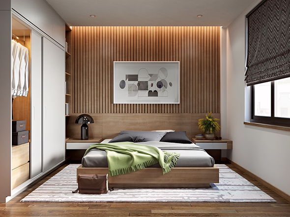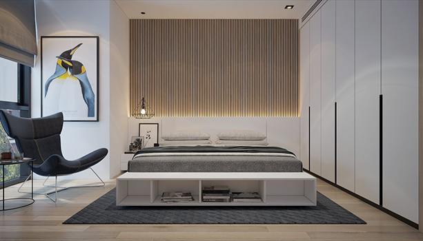 室內設計   >   睡房設計   >  使用板岩的重音牆睡房